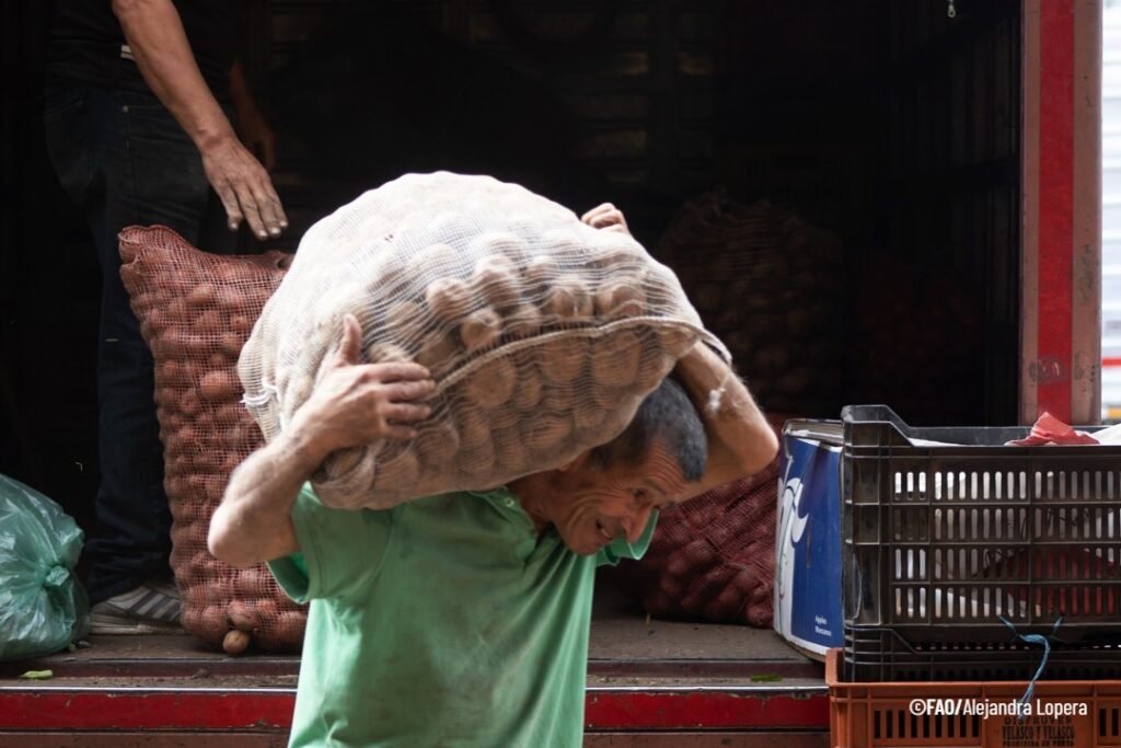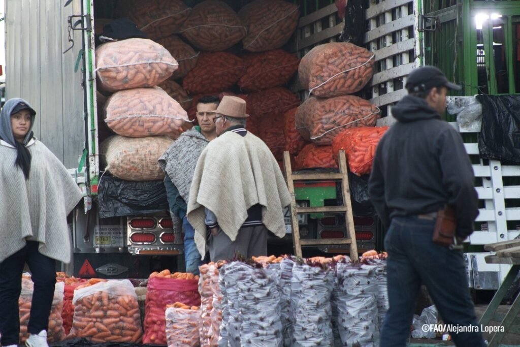 Hasta un 80 % puede subir el precio de un alimento por intermediación, mientras la logística también aumenta su huella ambiental. Fotos: FAO, Colombia.